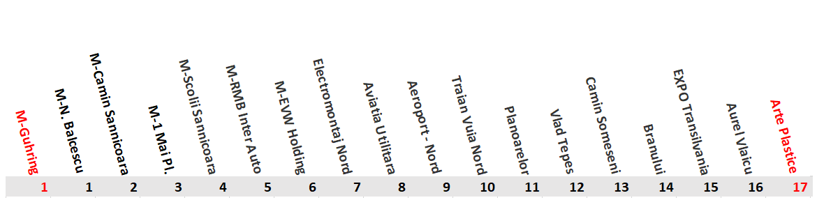 Atenție! Plecările de la orele 6:10, 7:15, 13:20 și 14:25 circulă deviat, spre Sânnicoara, de la Pasajul Dezmir, pe str. Crișeni – str. Planoarelor – str. Feroviarilor.